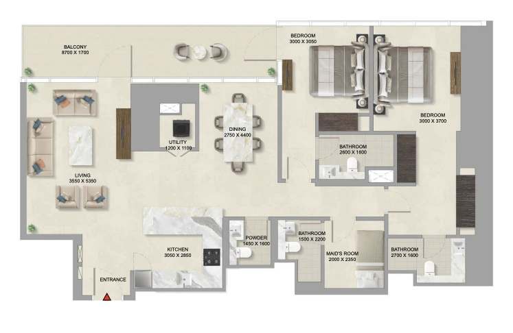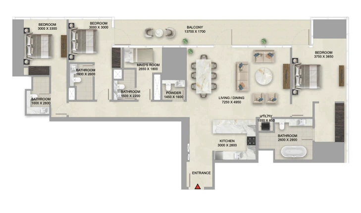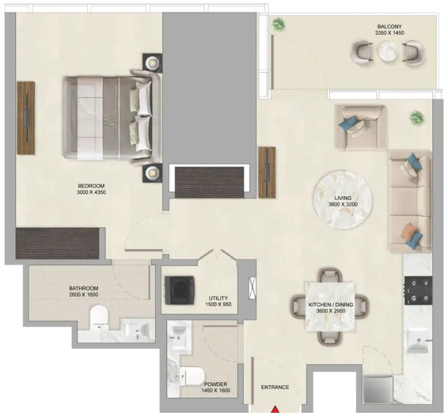 - Spacious 1-bedroom premium residences with powder room, store room, and expansive balconies.